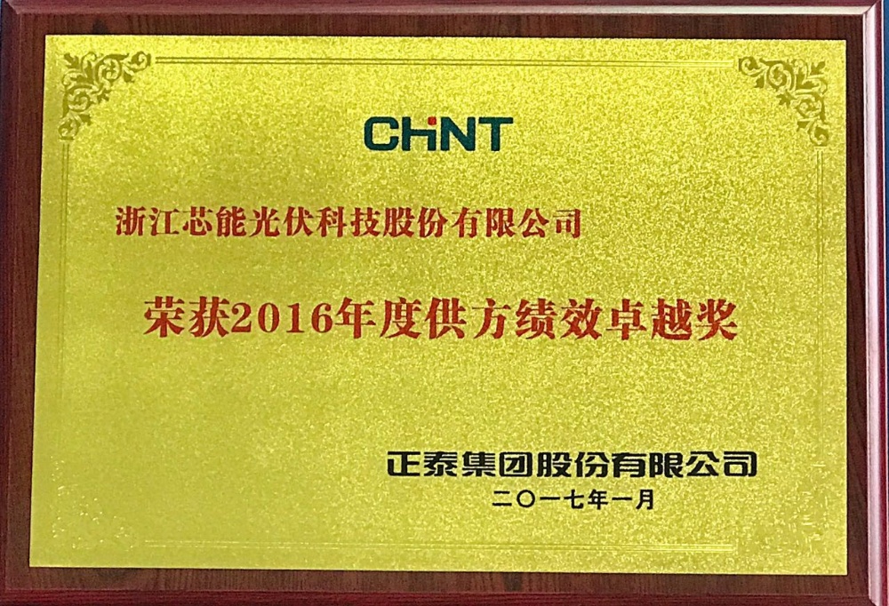 芯能科技获正泰集团颁发2016供方绩效卓越奖