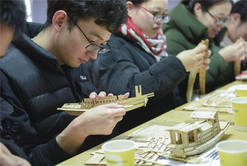最后,还开展了富有创意的手工制作红船工艺品。通过观摩安装视频,了解红船的结构造型及制作流程,将一块快零散的部件拼搭成一艘完整的红船模型。红船模型制作看似简单,实践起来并不容易,每位党员专心致志、全神贯注手工红船制作,历时一个多小时,通过各自的努力及相互协作完成制作,看到一艘艘精致的红船模型陆续呈现在眼前时,大家都很兴奋。这项活动寓教于乐,将枯燥的理论学习和活泼的娱乐形式结合起来,不仅活跃了气氛,增进了党员间的沟通交流及团队协作能力,更把红船精神融入到活动中,让党员牢记红船精神,坚定政治信念。