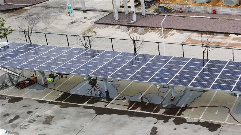 衢州蓝然新材料的光伏车棚将海鸥型的汽车车棚和清洁能源相互结合,成为了进入厂区的一道亮丽的环保风景线。