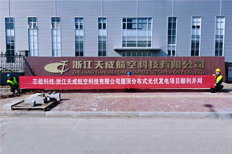 2020年12月4日,由芯能科技投资建设的浙江天成航空科技有限公司分布式光伏电站项目经天台电力局验收,顺利并网。