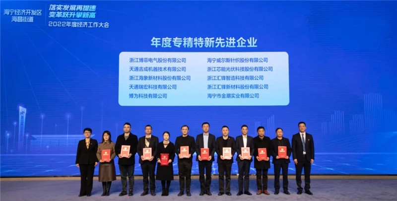 蓄力新征程,奋进向未来。2月21日,在海宁经济开发区(海昌街道)2022年度经济工作大会上,芯能科技荣获2021年度专精特新先进企业和慈善之星先进企业。