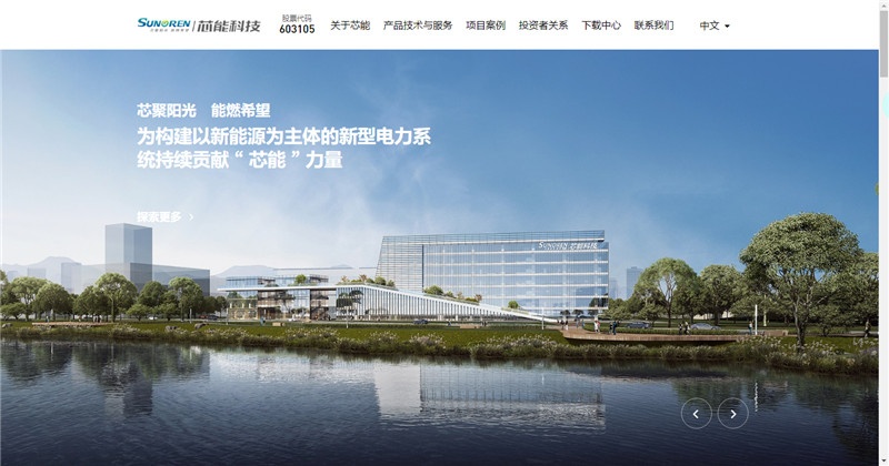 新版官网布局清晰、内容丰富,设置了关于芯能、产品技术与服务、项目案例、投资者关系、下载中心、联系我们、新闻资讯、职业发展八大板块,为客户全方位展现生动且多维度的芯能科技。