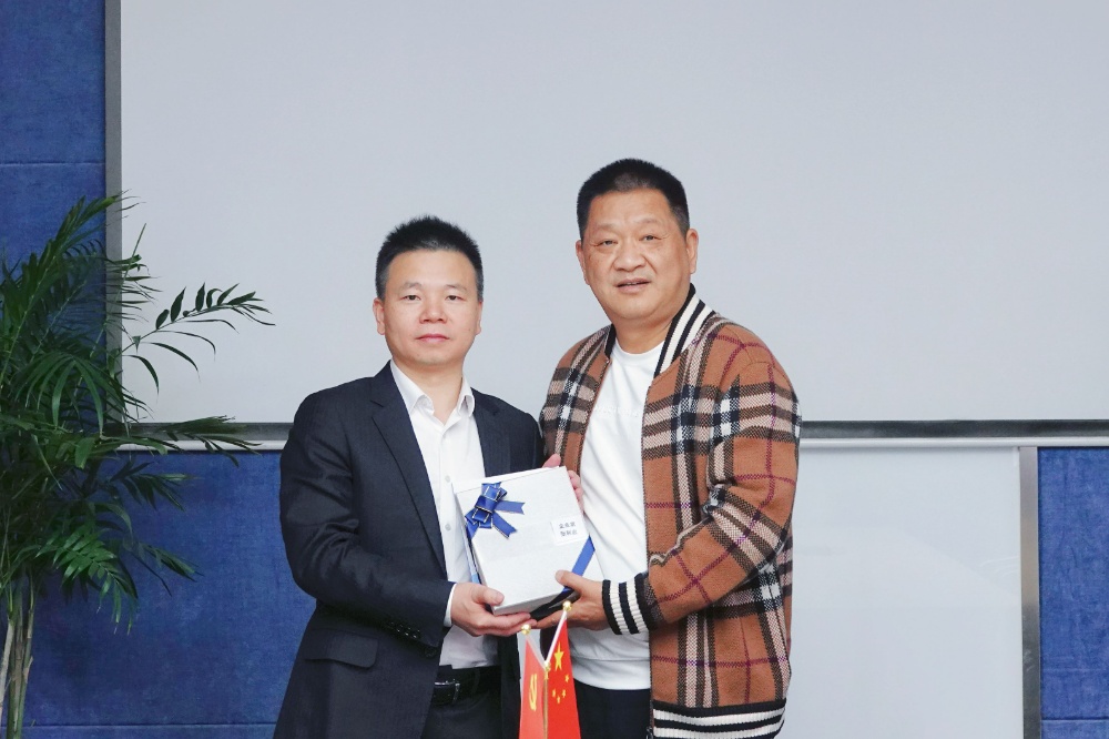 △ 中共海宁市委常委、海昌街道党委书记、经济开发区党工委书记徐洪华为芯能科技授牌