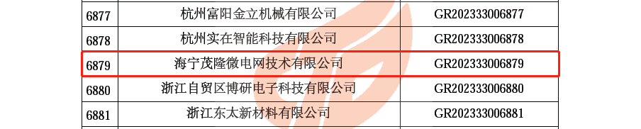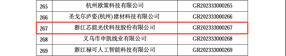 近日,全国高新技术企业认定管理工作领导小组办公室发布了《对浙江省认定机构2023年认定报备的高新技术企业进行备案的公告》,浙江芯能光伏科技股份有限公司荣列其中,再次顺利通过国家高新技术企业复审。芯能科技下属子公司海宁茂隆微电网技术有限公司、桐乡科联新能源有限公司也成功通过认定,由此正式迈入高新技术企业行列,开启新篇章!