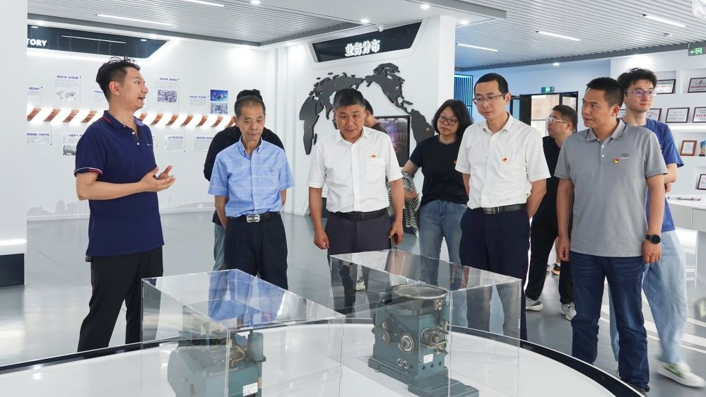 在田中精机党支部书记俞开明的陪同下,芯能科技党员一行首先参观了企业展厅,深入了解其发展历程、核心业务及代表性产品。