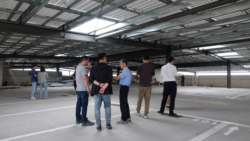 会后,党员们实地参观了厂区光伏车棚。整齐排列的光伏板既为车辆遮阴,又持续输送清洁电力,成为企业绿色发展的亮眼名片。其高效、整洁、与厂区环境融为一体的设计,直观印证了项目合作的显著成效。